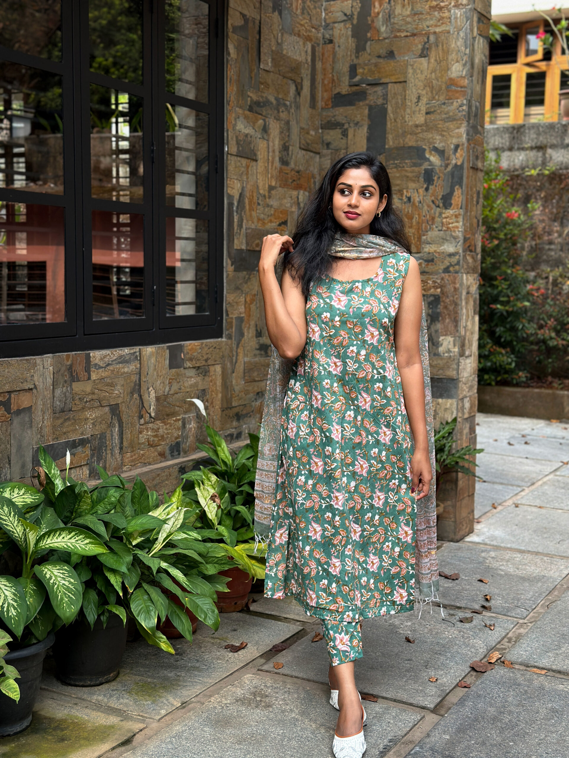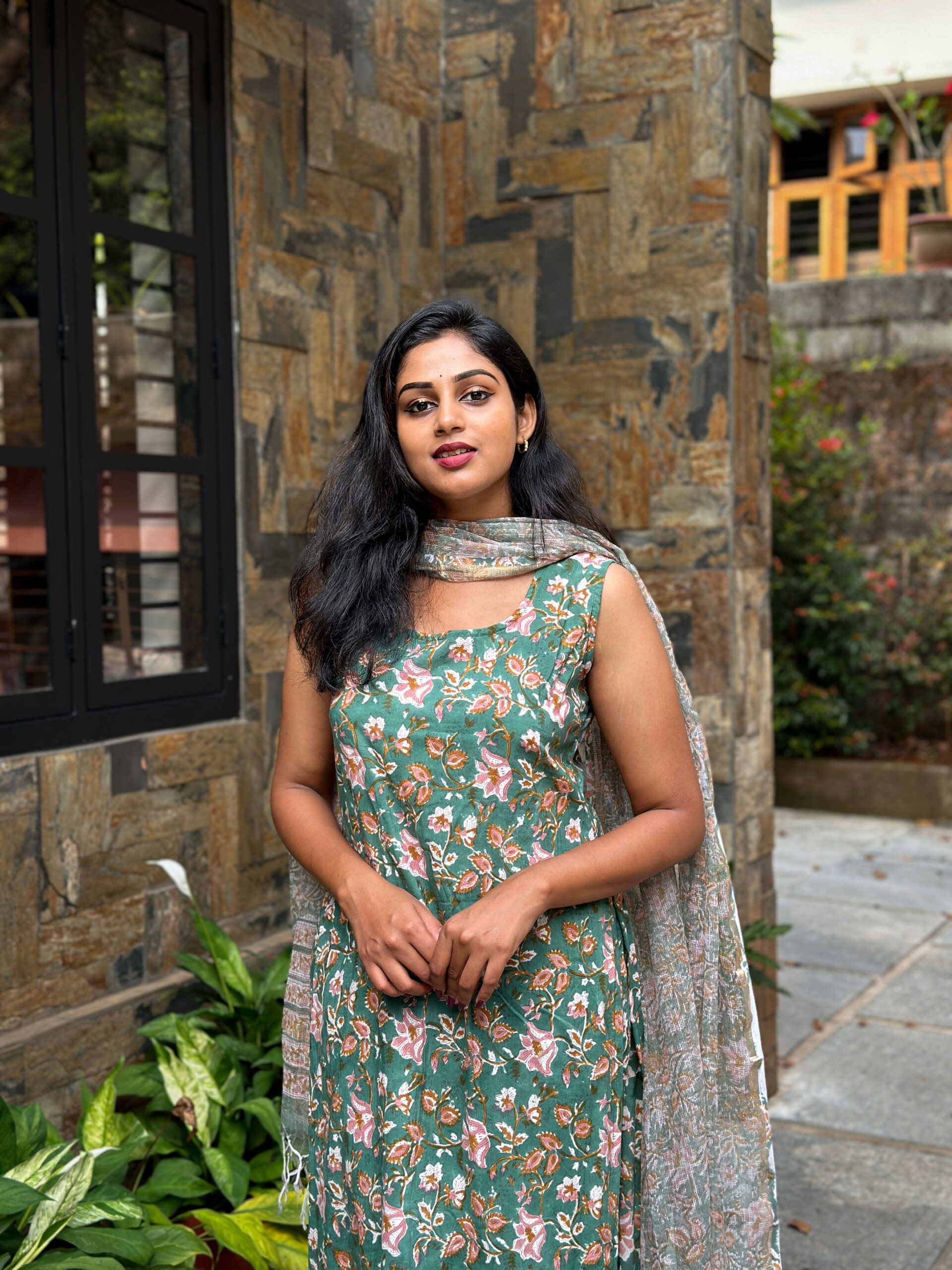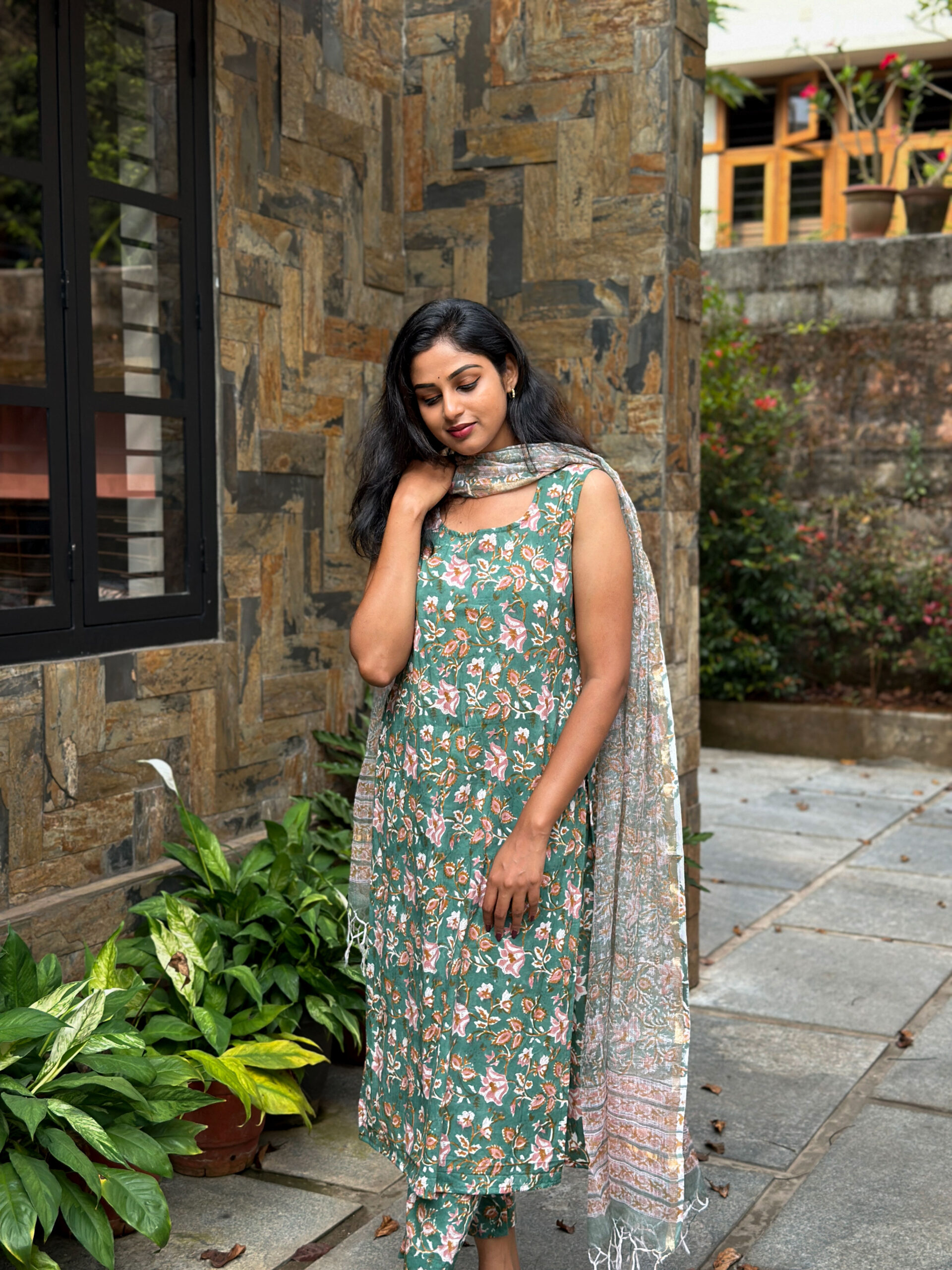 Hand Block Printed Salwar Set With Kota Doria Dupatta
