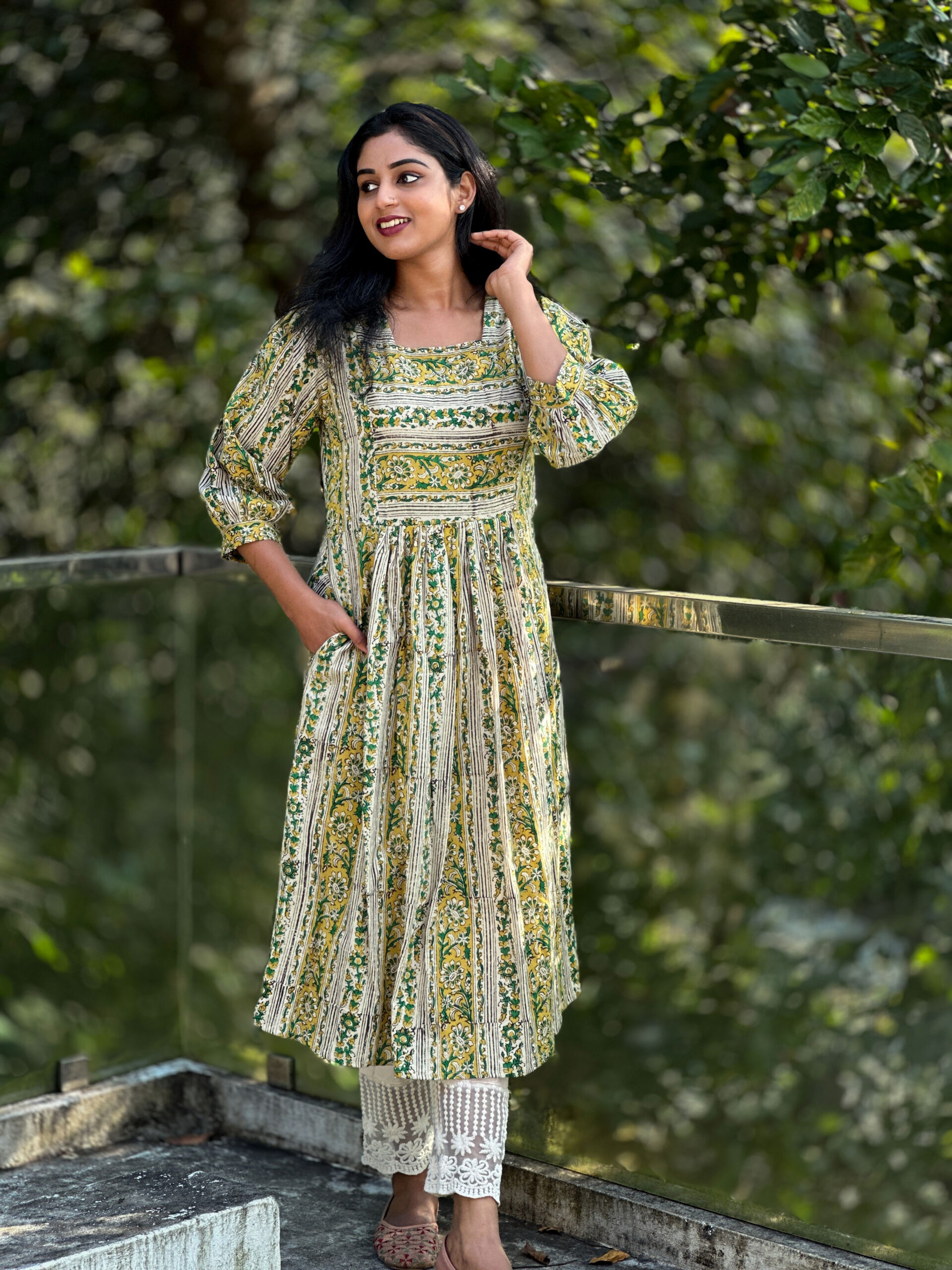 • DISCLAIMER: Natural-dyed colours might bleed during the first few washes or rub against the skin & other light-coloured garments. In the artful process of hand block-printing, embroidery work and stitching, variations are likely to come into existence. These irregularities are the hallmark of all handmade products and give each style a unique identity.