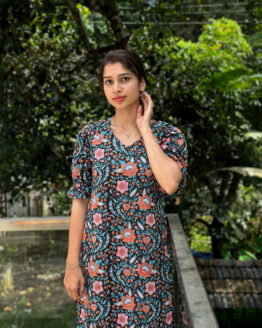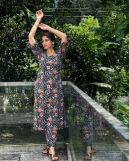 NIGHT LILLY- BAGRU BLOCK PRINTED CHANDERI SILK SAREE